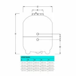 - 950 mm voor een debiet van 30m³/h voor zwembaden tot 120m³