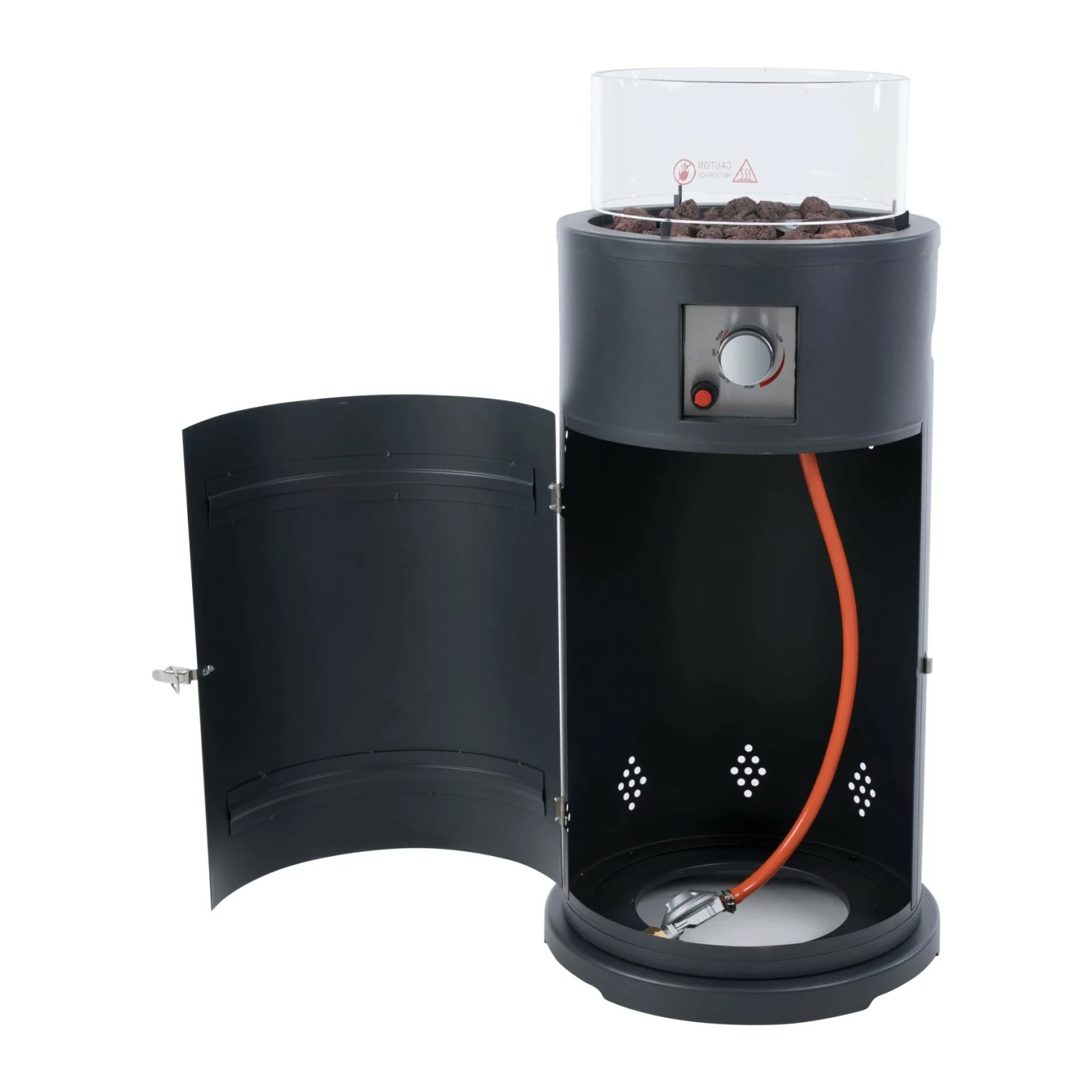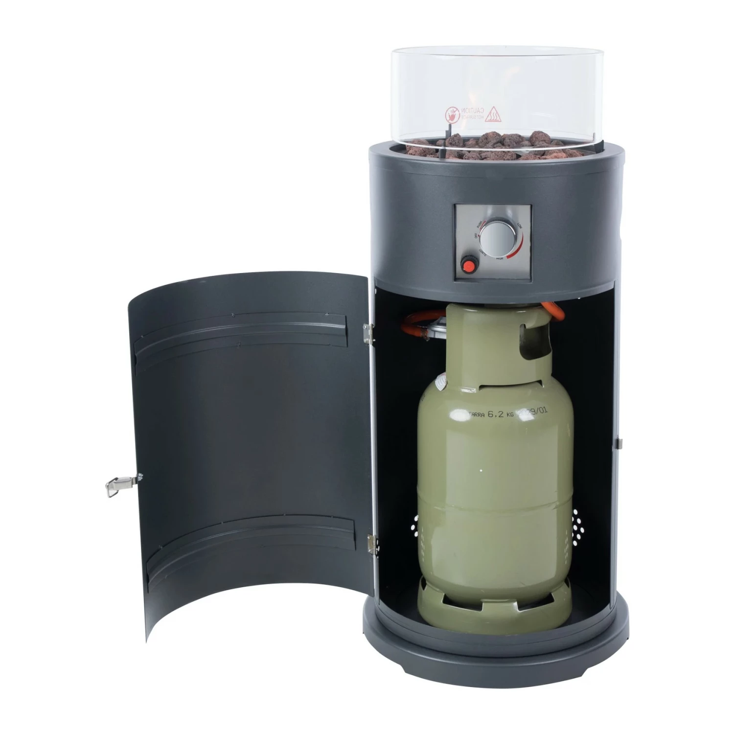 De Bogo design vuurtafel voor het opwarmen van een privé of horeca terras is een echte eyecatcher en een enorme meerwaarde voor een aangename sfeer. De gasverwarming is slechts 90 cm hoog en daarom ideaal om bij een tuintafel of een poolhouse tafel te zetten. Onderaan zit een ruimte waar u de gasfles kan in verstoppen.