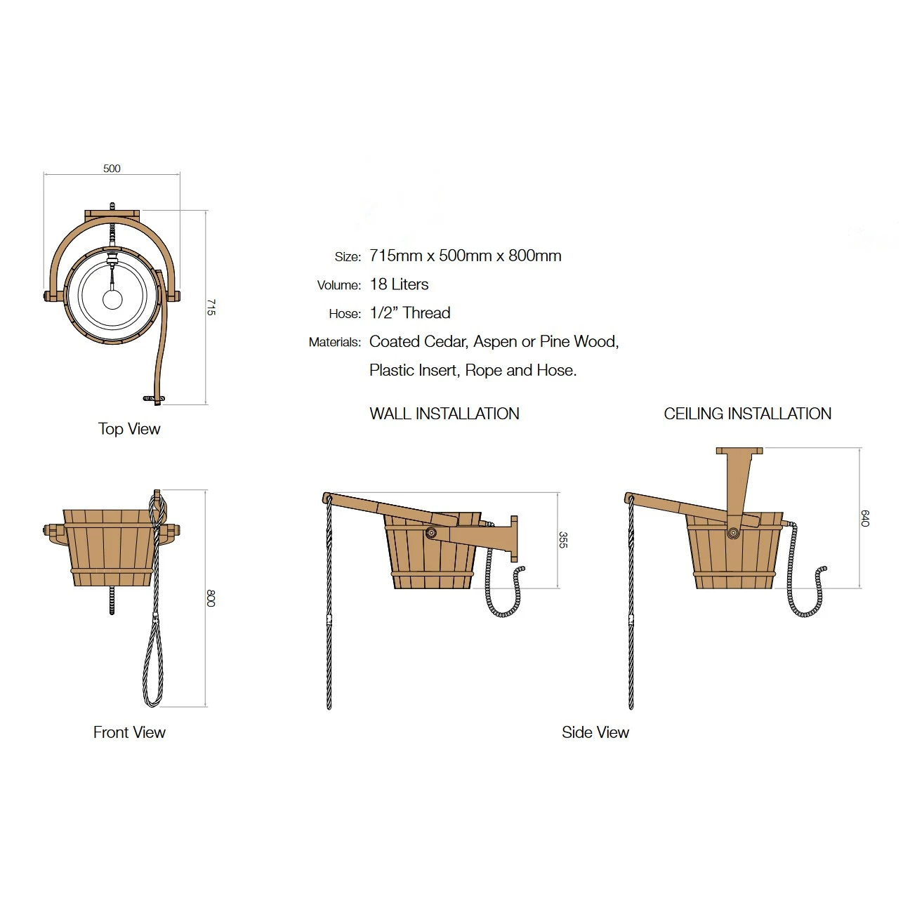De emmer douche is gemaakt van Cederhout. Dit hout heeft een typische bruin rode kleur die doorheen de tijd vergrijst. Cederhout is een zeer duurzame houtsoort. Hierdoor zal u vele jaren plezier beleven aan deze houten kantelemmer.