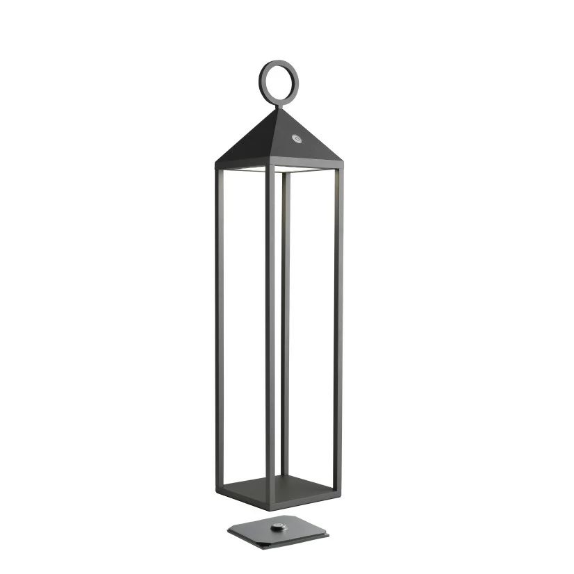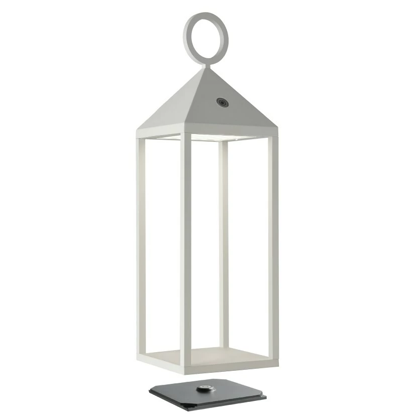 - Draadloze en oplaadbare sfeerlamp voor in de tuin vervaardigd uit zwart of wit gelakt aluminium. Het laadstation is meegeleverd (niet waterdicht, dus binnen opladen)