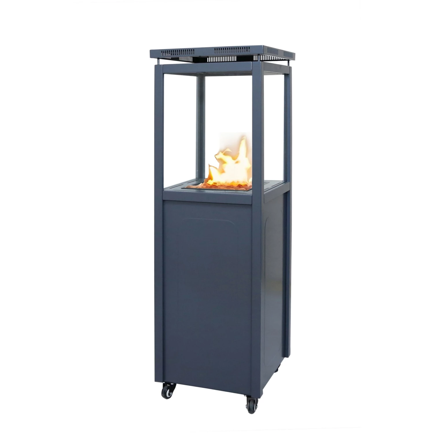 Deze verwarming op gas voor terras is handig en veilig. Vooreerst kan onderaan een gasfles (propaan – standaard Primagaz fles) van 6 tot 11kg geplaatst worden. Bijkomend zorgen de wieltjes zorgen voor de mogelijkheid om de verwarming eenvoudig te verplaatsen. Tot slot is het design is modern.