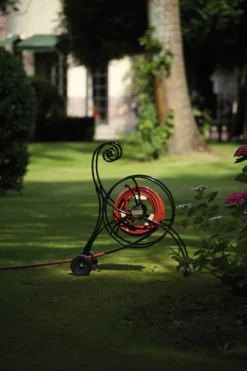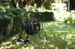 Verschillende (zeer) lange tuinslangen zijn mogelijk. Standaard is de Waterette uitgerust met een 40m tuinslang. Je kan er ook voor kiezen om op de slangenwagen die sterk genoeg is 60m of 80m tuinslang te monteren. We hebben ook een Mirtoon met tuinslang 30 meter van het merk Zee