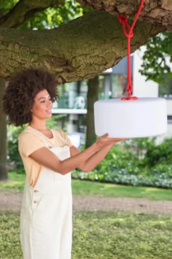Fatboy Thierry le Swinger is een originele draadloze LED hanglamp met dimmer. Deze sfeerlamp wordt geleverd met een bijhorend touw en een deelbare staander. Prik hem in de grond of hang hem op. Gebruik de Swinger zoals jij dat wil. Hoe jouw tuin er ook uitziet, er is altijd een plekje voor deze multifunctionele lamp.