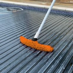 De microvezel hoes is eenvoudig te vervagen. De microvezel borstel heeft ook een felle oranje kleur waardoor hij zeer goed zichtbaar is onder water. Door de flexibiliteit kan u poetsen in iedere hoek of moeilijk te bereiken stuk van het zwembad.