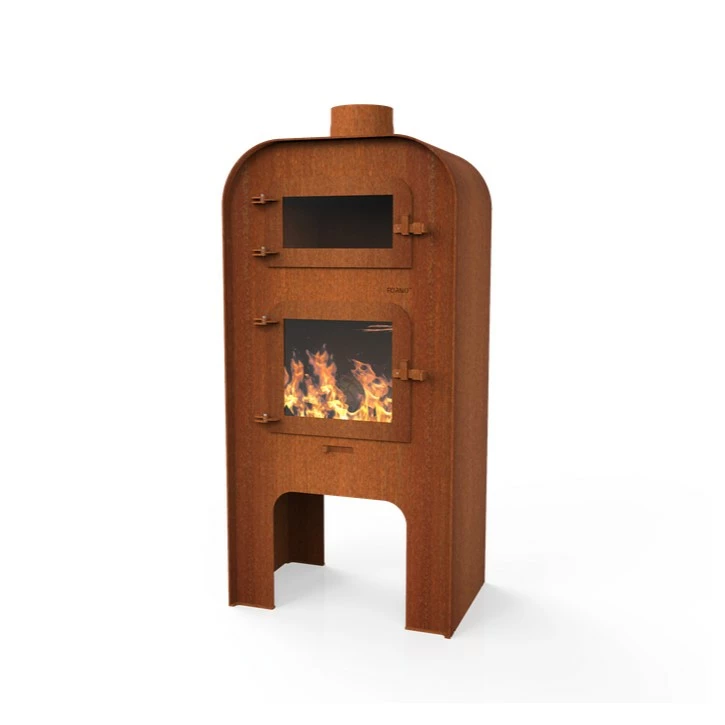 - Een tuin kachel met pizzaoven en met dubbelwandige vuurkamer
