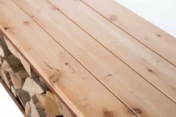 De stapelbare houtboxen zijn van hetzelfde merk. Dit zorgt er voor dat ze zeer mooi combineren met deze Tyr bank met houtstapelplaats. Plaats je de bank in de buurt van een vuurschaal of tuinhaard, dan gebruik je ten volle de handige hout stapelplaats onder de bank.