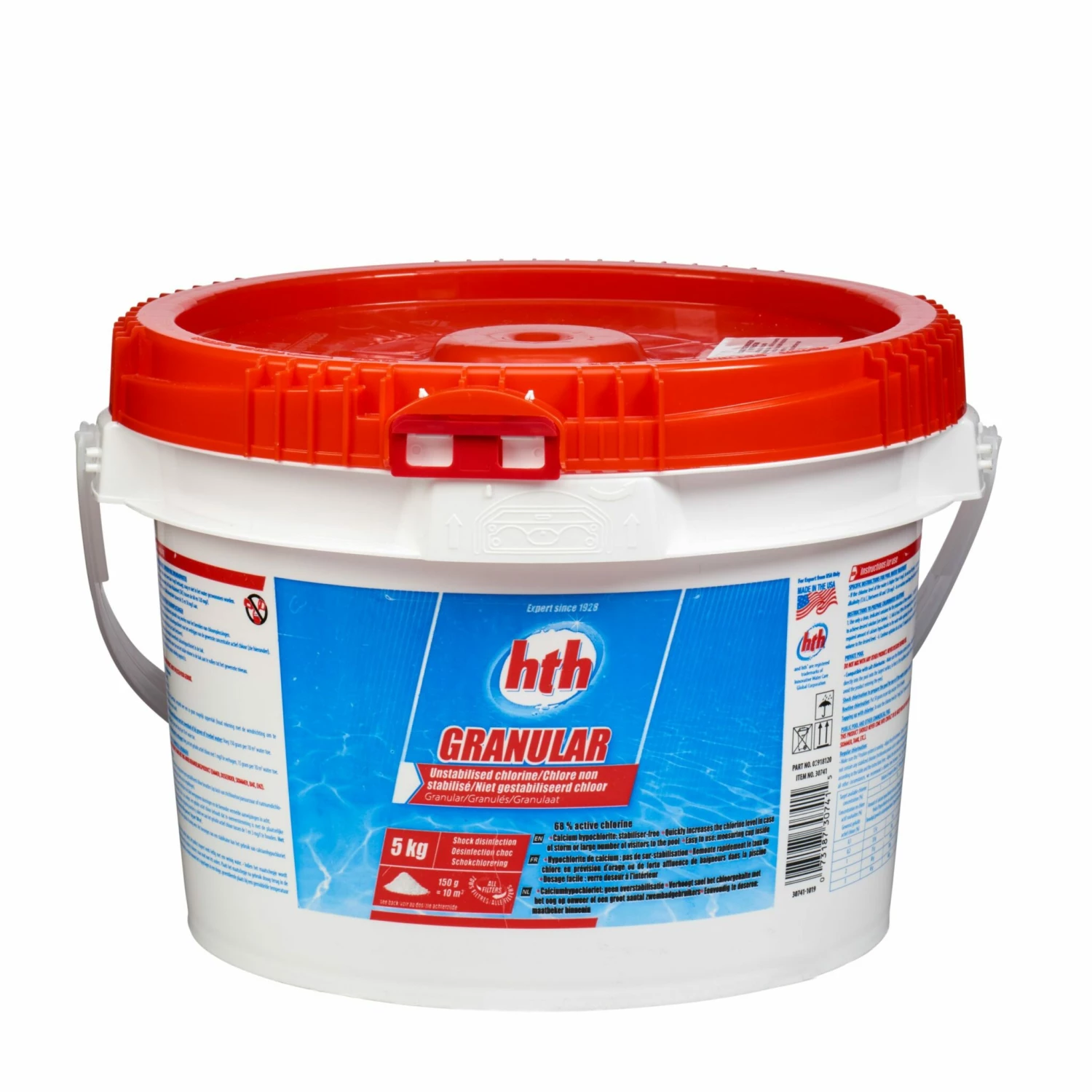 HTH Chloor granulaat is het ideale product voor het “shocken” van uw zwembadwater. Dit kan bv nodig zijn bij zeer warm weer, bij troebel water na een onweer of bv als uw zwembad water groen is door algenvorming. De chloorkorrels zijn een chloorbehandeling tegen bacteriën, virussen, fungicide en algen in publieke – en privé zwembaden.