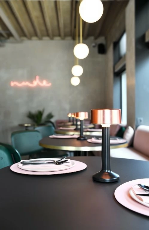 De nieuwe kleur vergrendeling functie bij de Moments LED tafellamp zorgt ervoor dat de knoppen aan de onderkant van de lamp niet kunnen bediend worden. Zodat klanten/bezoekers de kleurencombinaties of sterktes niet kunnen aanpassen.