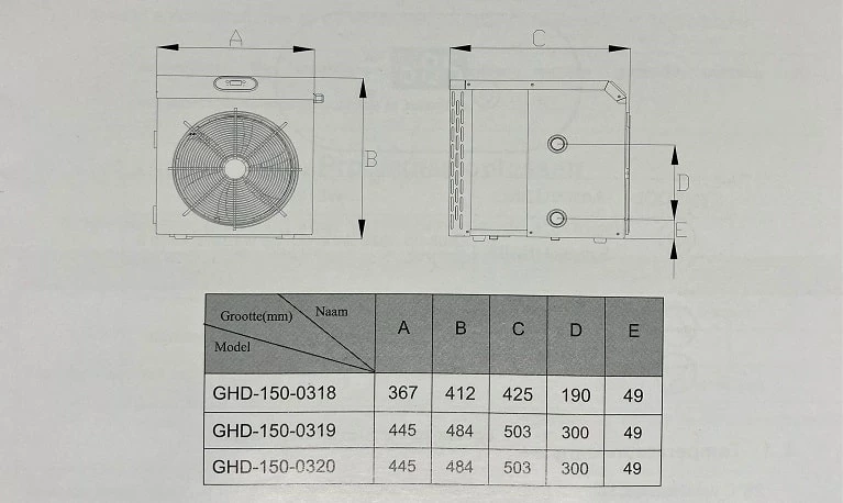 De Mini heater warmtepomp voor het verwarmen van opzet zwembaden. Eenvoudig plug and play model, met aansluitset, veiligheids stekker en duidelijke Nederlandstalige handleiding.