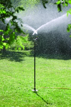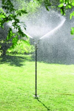 Propeler tuinsproeier is een elegante grassproeier. Deze is gemaakt uit een gegalvaniseerde stalen buis met zwarte poederlak.