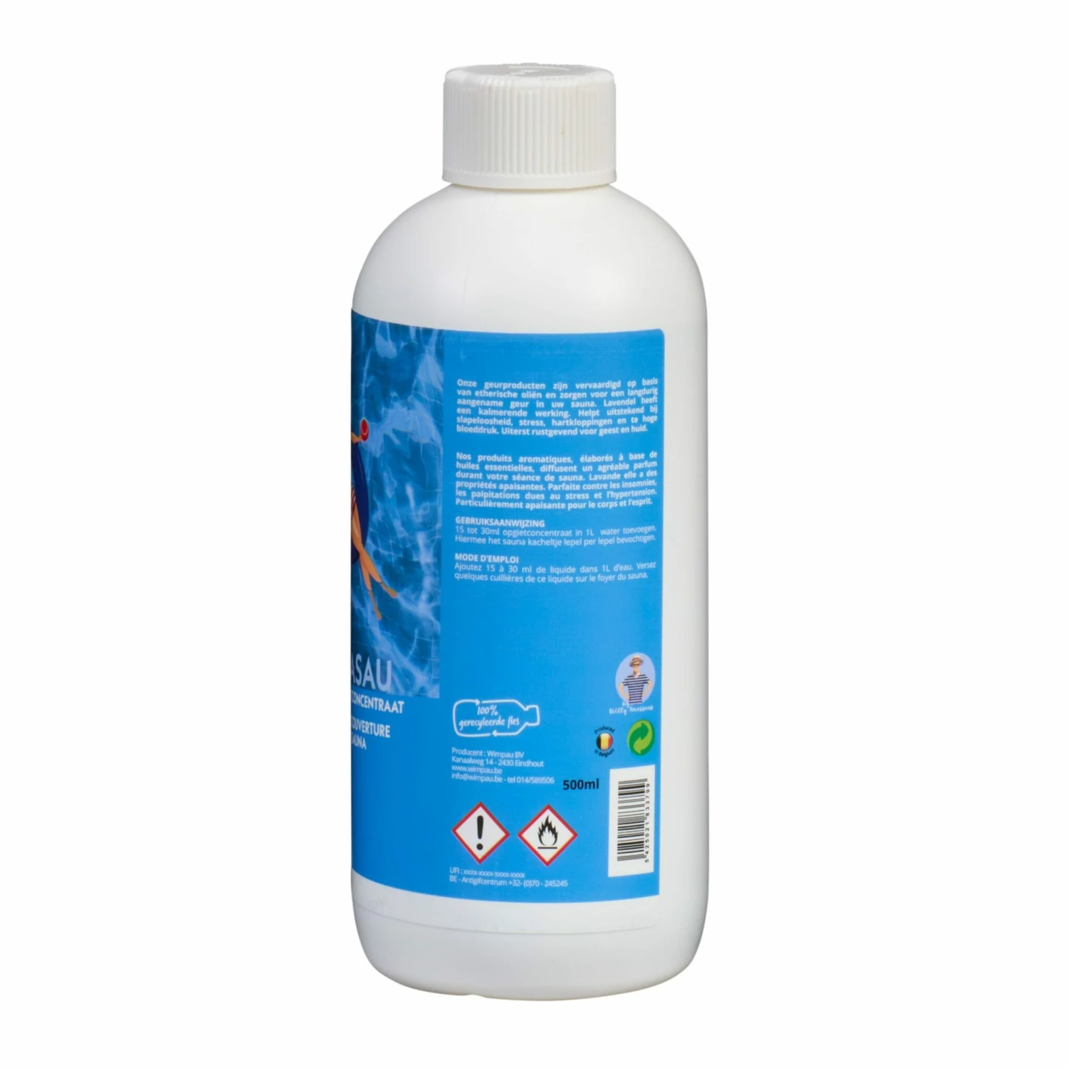 Sauna opgietconcentraat in bussen van 500ml. Hoog geconcentreerd en verschillende geuren, lavendel, rozemarijn en eucalyptus.