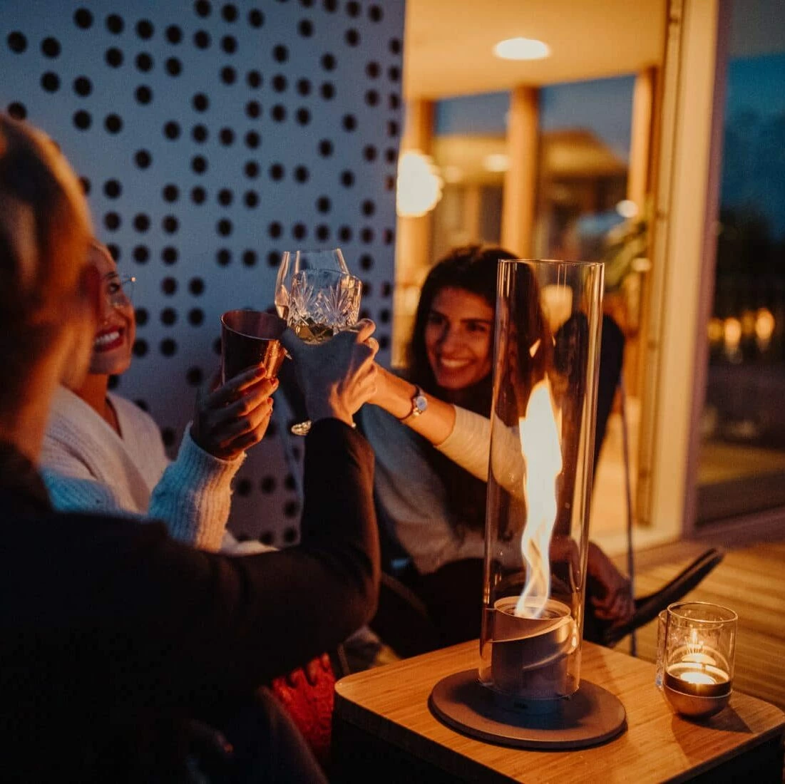 Hoe ontstaat de vlam vortex die typisch is voor SPIN? Heel eenvoudig: Höfats bio-ethanol brandt in de glazen cilinder, de aangetrokken lucht krijgt hierdoor een draaiend effect dankzij de gebogen plaatjes. Mede dankzij het schoorsteeneffect in het glas versterkt het draaikolk effect en trekt het vuur op indrukwekkende wijze aan!