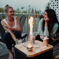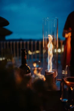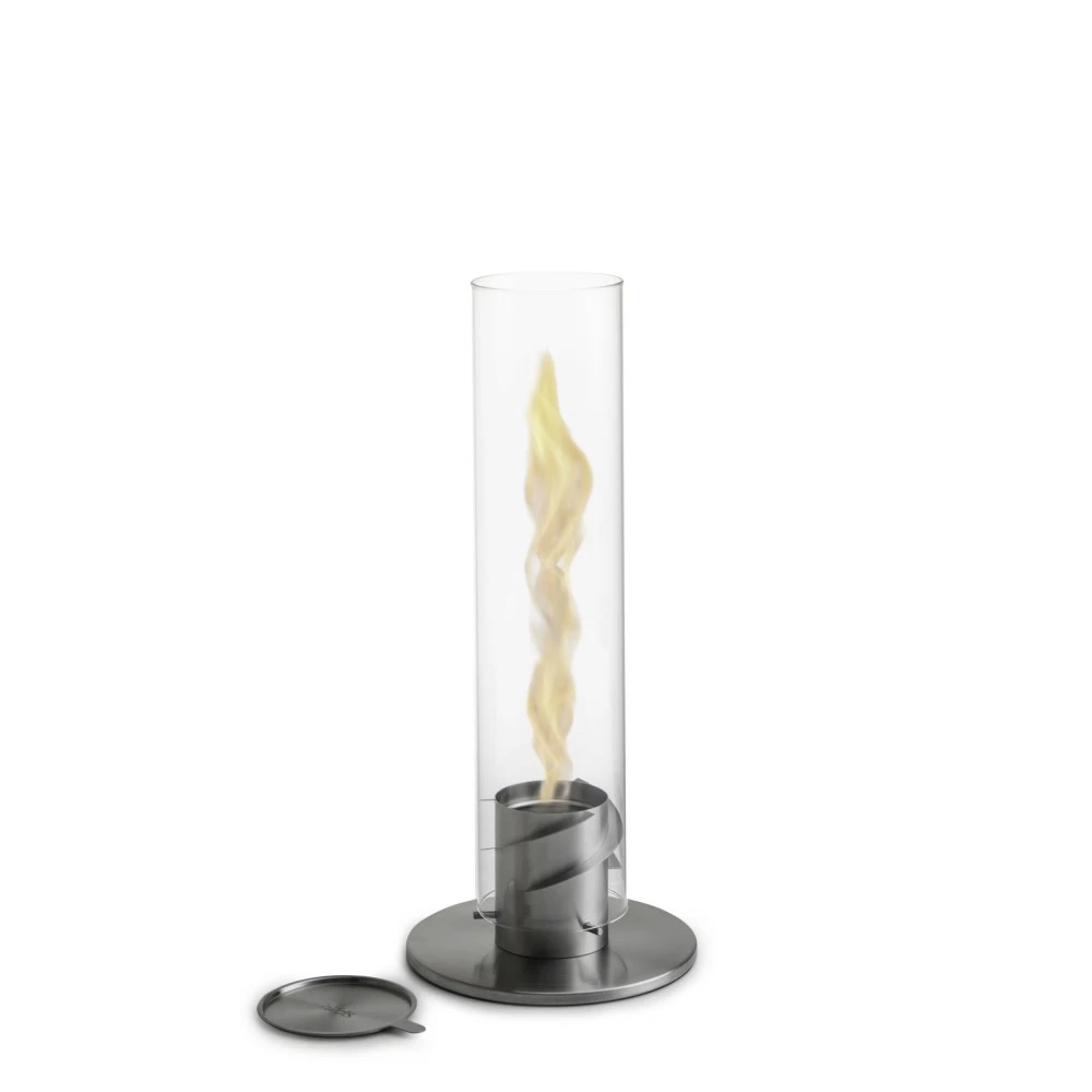 Spin Tafelvuur Höfats Bio-ethanol is een buitengewone tafelverwarming die een kampvuur sfeer oproept. Mede dankzij zijn fascinerende vortex van vlammen die dansen in een decoratieve glazen cilinder.