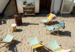 De handige samenklapbare strandstoel is een alom gekende ligzetel voor op het strand die je overal ter wereld kan terugvinden. De Designer Erik Sthmann maakte er een mooie nieuwe versie van met kleuren die werden geïnspireerd op de horizon.