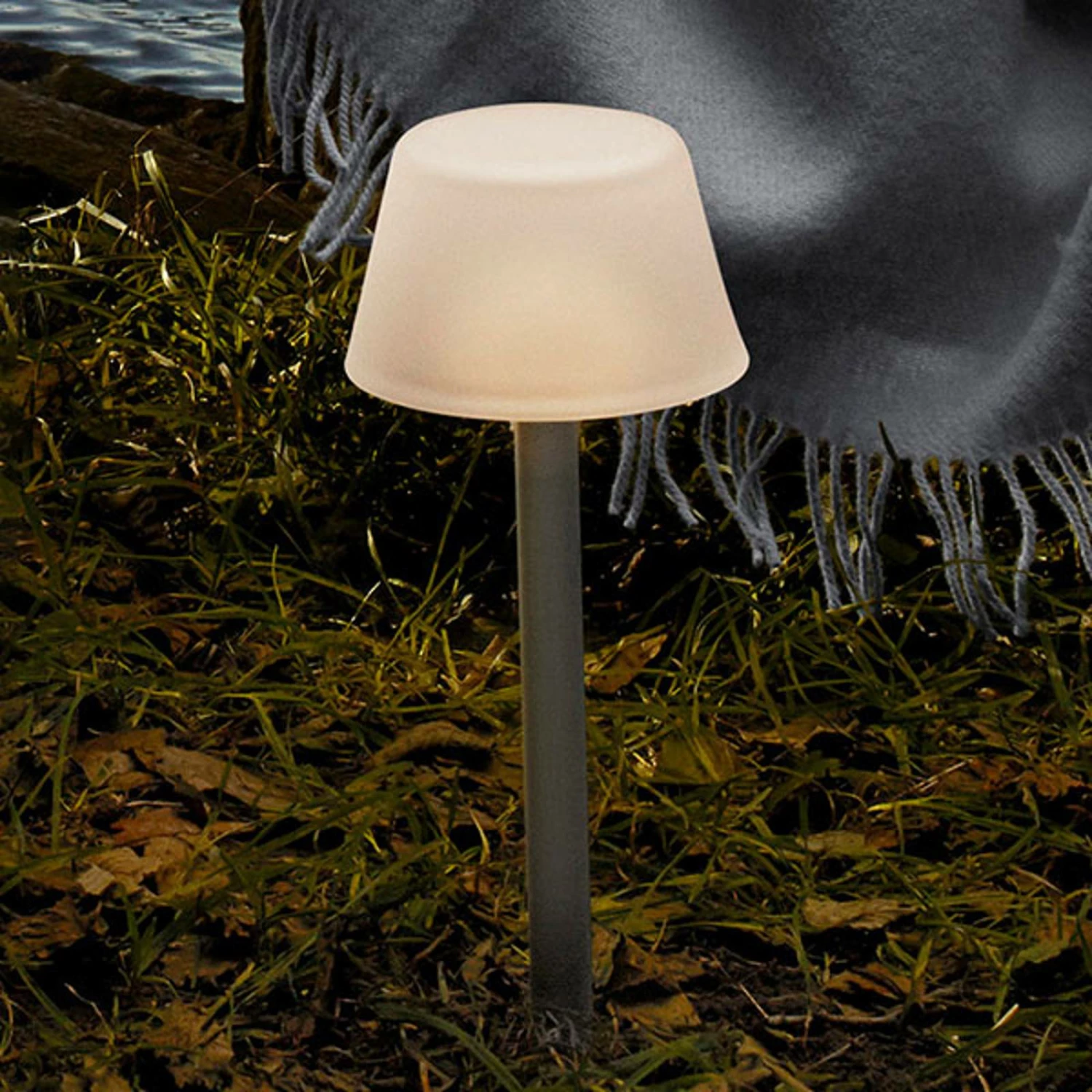 Ook hier maakte Tools design opnieuw ene prachtig mooi en vooral ook functionele tuinlamp met een prikvoet voor in de grond. De tuinlamp werkt op zonne-energie en laadt dus automatisch op, u hebt geen vervelende laadkabels nodig om deze op te laden. Deze lamp voor in de tuin wordt opgeladen door het zonlicht. Het kapje is gemaakt van “Frosted Glass” wat zorgt voor een mooi zacht licht. De lamp zelf is een LED lamp met een levensduur van 15000h. Het licht zelf is Warm White (2700 – 3200 Kelvin). De voet/buis om in de grond te prikken is vervaardigd uit geanodiseerd aluminium en dit zorgt voor een lange levensduur en kwalitatief product.