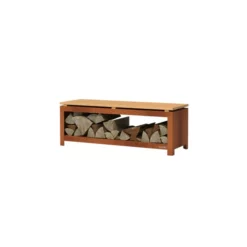 De zitbank met ruimte voor brandhout wordt vervaardigd uit 3mm Corten Staal van de beste kwaliteit. De roest bruine banken berging voor het brandhout heeft ongeveer 4 – 5 maanden nodig om mooi egaal te roesten. Je kan een roestversneller gebruiken om de sneller te laten verlopen. Onze houtopslag in roest staal zijn ongeroest geleverd, de weersinvloeden zullen het proces op gang brengen en doen dan hun werk om de roestlaag te creëren.