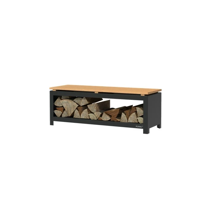 Onze tuinbank houtopslag in cortenstaal is beschikbaar in zwarte poedercoating of in roest. De bank houtopslag is verkrijgbaar in een lengte van 1.2m en 2m.