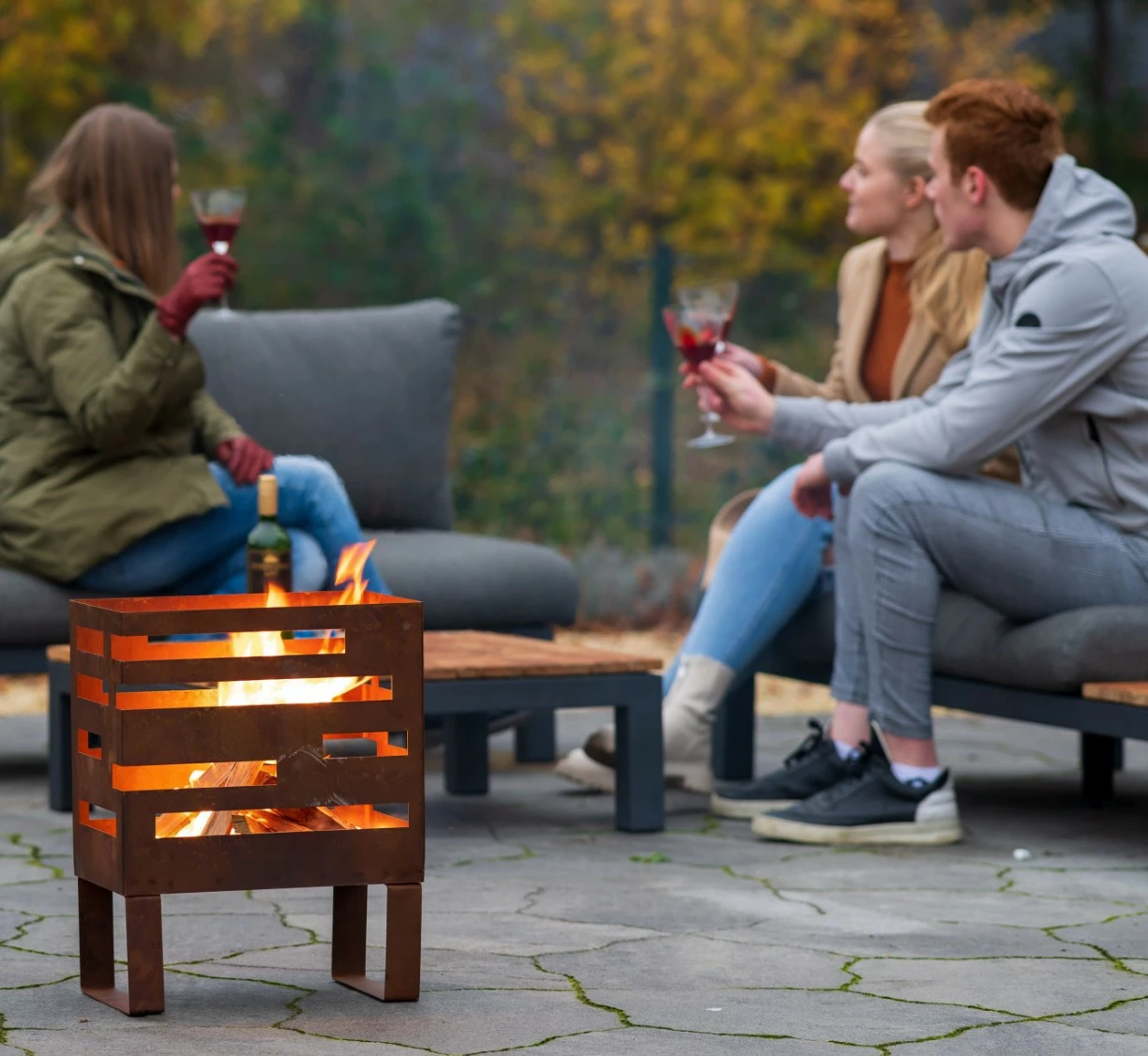 De geoxideerde look maakt er een eigentijds ontworpen tuinvuur van die DE eyecatcher is in de tuin of op terras.