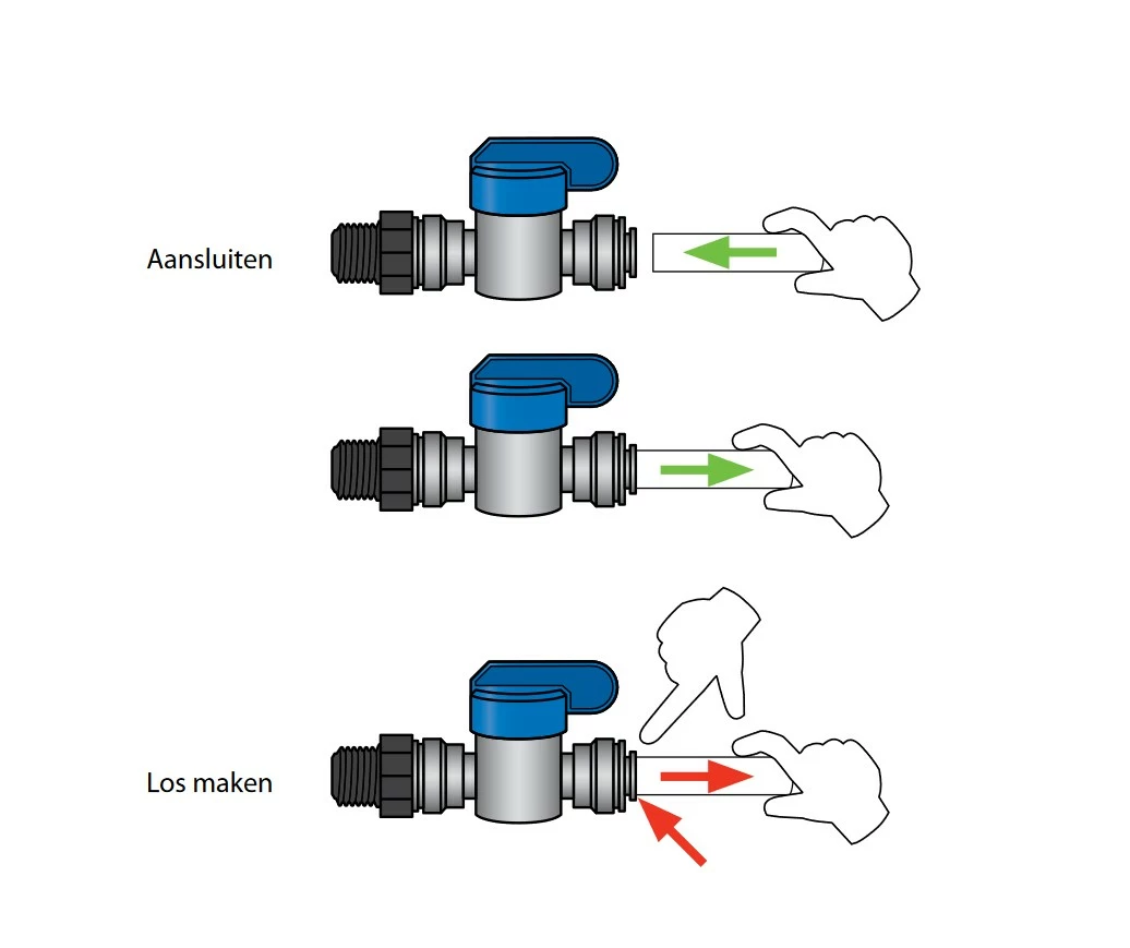 Watersens stop valve kogelkraantje voor de flowmeter van de Watersens automatische waterbehandeling.