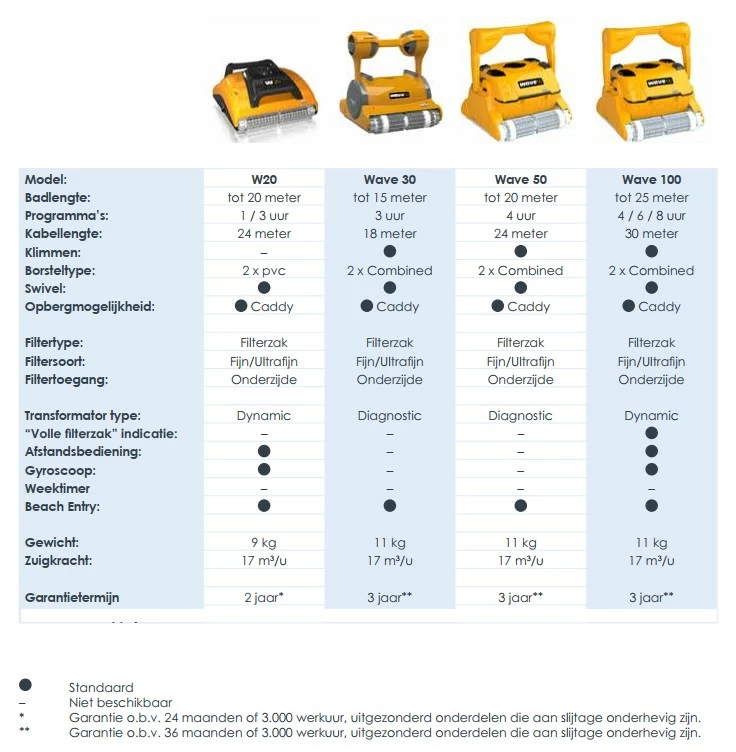 Vergelijking Dolphin zwembadrobots Wave reeks