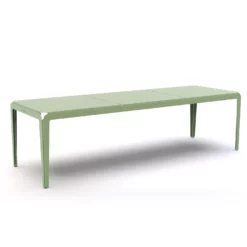 De keuze voor het aluminium voor het maken van de tafel voor in de tuin is een heel slimme keuze. het materiaal is oerdegelijk (70% van alle geproduceerde aluminium materialen worden nog steeds gebruikt). Alsook is aluminium perfect te recycleren. De design tafel voor in je tuin of poolhouse is gepoederlakt in een prachtige blauwe of groene kleur. De langste tafel van 270 cm is ook extra verstevigd. Het gewicht van aluminium is zeer licht dus de tafel is eenvoudig te verplaatsen.