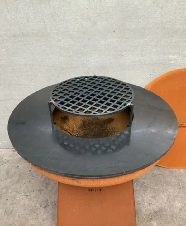 De White Fire barbecue kan voorzien worden van een rooster om in het midden op te plaatsen. Op die manier kan je de White Fire ook gebruiken als barbecue.