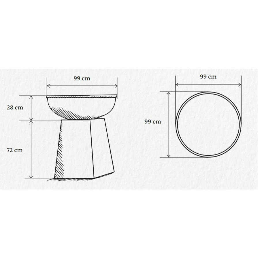 - hoogte : 1 meter (voet is 72cm hoog en vuurschaal gedeelte is 28cm hoog)